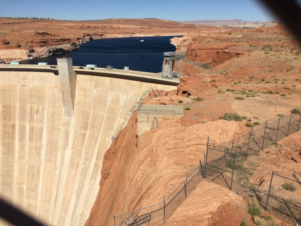 Had we known we could have made good use of the drive from Cortez, Colorado to Page, Arizona. We could have churned cream into butter, agitated clothes in a basin or proven those cereal boxes claim that “some settling may occur.” It was a fairly straight and level road, but by no means flat. Arizona tax dollars not at work. Washboard road for over an hour. After a while you start shaking your head in dismay and muttering, “damn.” It reminded me of what a challenge it must be to build these homes on wheels in a way that corners and connections don’t vibrate apart. Someone experienced with RVs asked reviewers to be more tolerant of the problems of older units since they suffer extended earthquakes every time they’re moved.